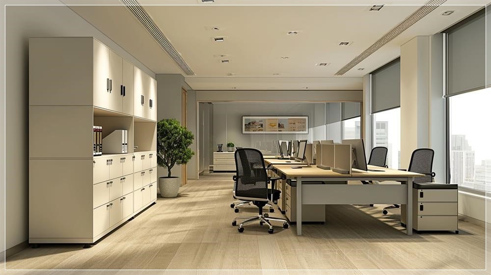 PROMPT: Minimalist long and big office room with filing cabinet and small meeting table --style raw --no human --ar 16:9 --v 6.0 Ý Nghĩa: