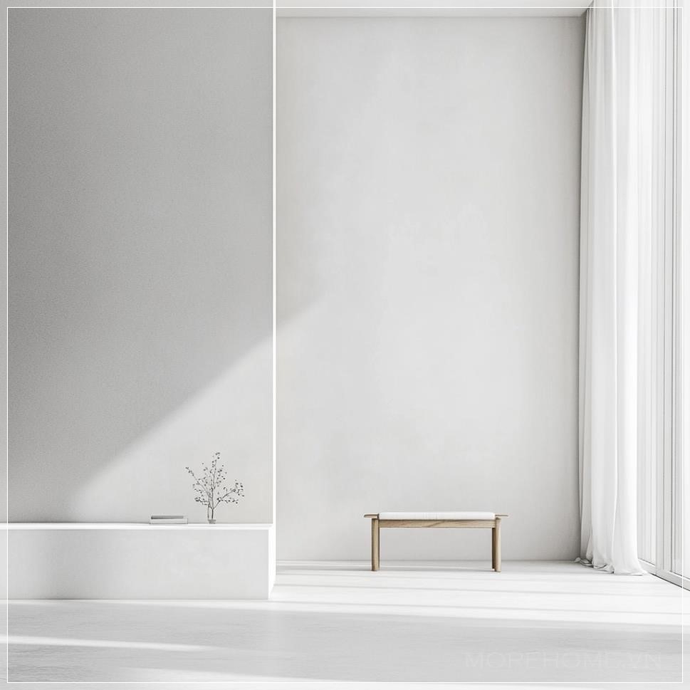 Một không gian nội thất mang phong cách tối giản, với màu trắng chủ đạo, tạo ra một cảm giác thanh thoát, nhẹ nhàng và hiện đại. Thiết kế này chú trọng vào sự đơn giản, nhưng vẫn đầy đủ tiện nghi và tinh tế, mang lại một không gian sống thoải mái, dễ chịu cho người sử dụng.