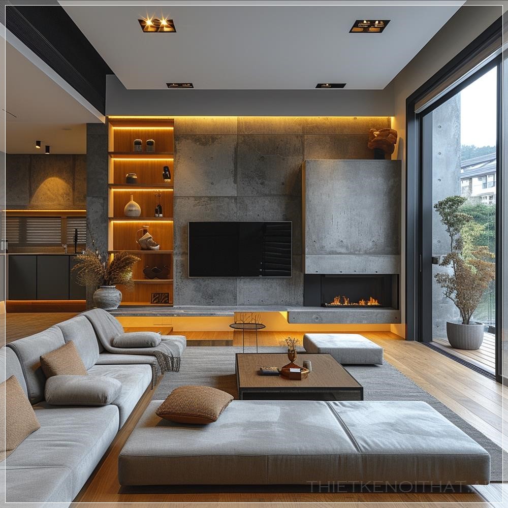 PROMPT: interior design moderno living with minimaliste style chimney::2 and storage Wall and whithe wooden slats --v 6.0 --s 550 Ý Nghĩa: